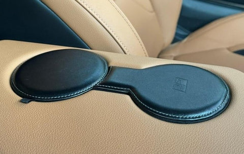 This genuine leather cup holder cover featuring the GR logo adds a touch of luxury. It also prevents your elbow from getting caught in the cup holder when shifting gears in a manual transmission, providing added support for gear shifting.